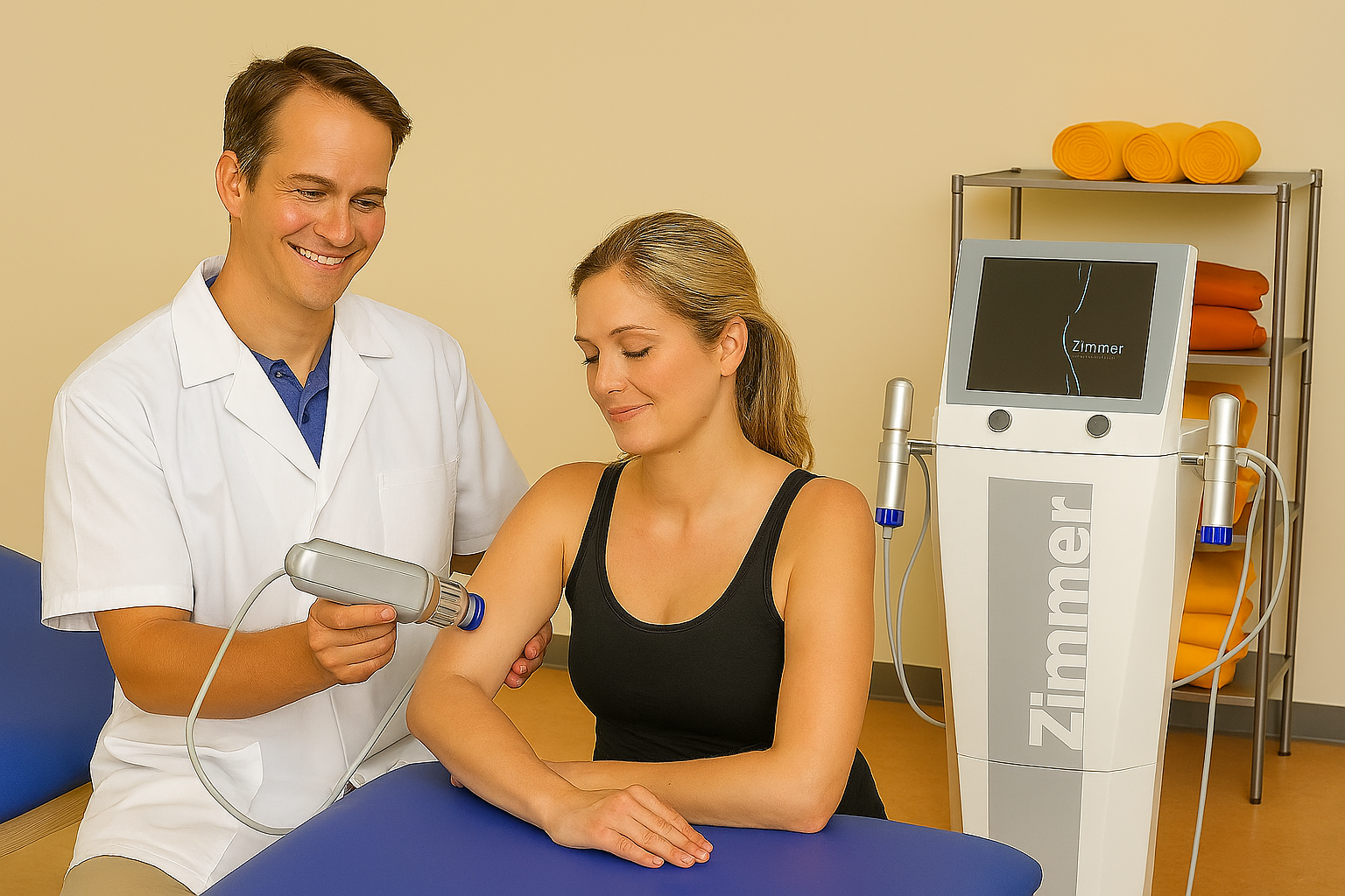 Die Stoßwellentherapie (extrakorporale Stoßwellentherapie) ist eine moderne, nicht-invasive Behandlungsmethode, bei der hochfrequente mechanische Wellen auf die betroffene Körperregion gerichtet werden. Ziel der Therapie ist es, die Geweberegeneration zu stimulieren, die Durchblutung zu verbessern und Verkalkungen aufzulösen, wodurch Schmerzen gelindert und Heilungsprozesse beschleunigt werden